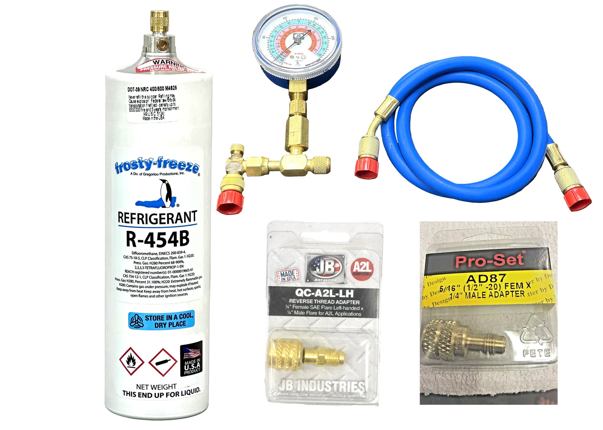 R454b, Refrigerant, 8 oz. Recharge Kit, Gauge, Hose and System Adapters